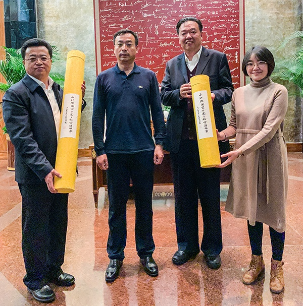 2020年1月3日,青海省林业和草原局党组书记、局长李晓南在上海向澎湃新闻赠送了青海著名版画家张洪春·阿太创作的一式两套(共十幅)原创珍藏版三江源国家公园系列宣传版画。