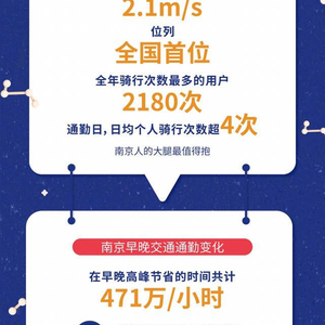 哈啰出行年终数据显示,2019年夜间骑行量占全天比重约19.39% ,同比2018年增长近一倍。其中南京19:00-24:00间骑行人数占全天比例17.8%。共享单车也感受到了南京夜经济的温度。