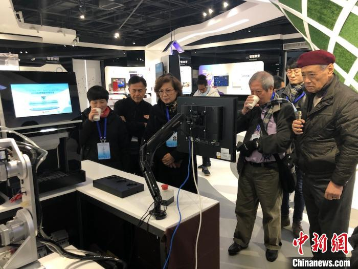 推开客厅的门,随着语音指令的发布,室内窗帘自动打开,音乐开启,空气净化器、空调等电器也即时响应;在客厅的一角,一台“智能咖啡机”前,随着采访团成员手指的触动,30秒左右,机械手臂将咖啡端到了人们面前;走到工作台边,随着人们手势的摆动,面前“书本”也开始翻页,并发出翻页的声响,这是模拟人们翻书发出的声音,与之同步的还有相应的画面。