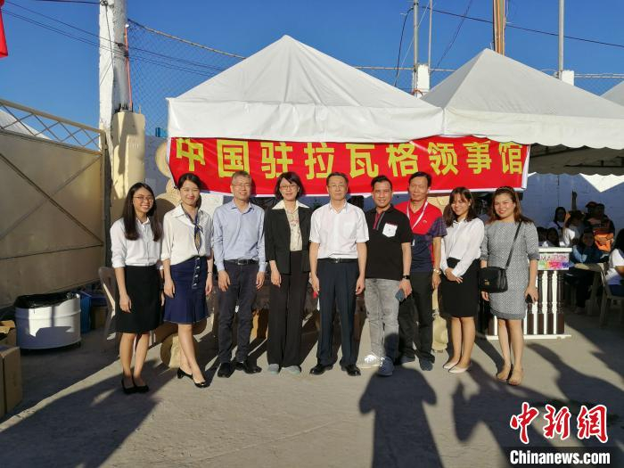 当地民众载歌载舞欢迎中国游客。 中国驻拉瓦格领事馆供图 摄
