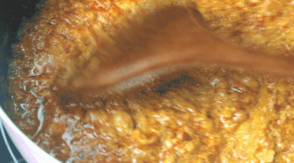 诱人的色泽,饱满可见的蛋黄,这样的美味是只有咸蛋黄辣酱才有的质感。