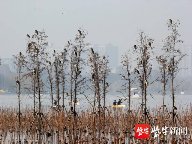 图为夜鹭聚集在玄武湖。