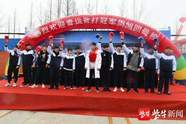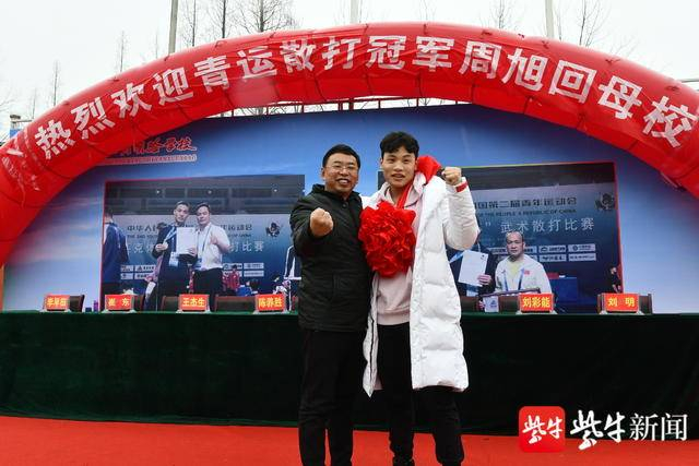 1 月 5 日上午,连云港市灌南县光明实验学校迎来一位冠军校友周旭,周旭的到来赢得全校师生的热烈欢迎。今年17岁的周旭出生在灌南农村,自幼喜欢武术,从12岁开始学武,14岁被选入上海体育学院散打队,经过3年多的努力,成功摘得2019年中国第二届青年运动会武术散打冠军,现在已经是上海体育学院散打青年队队长。