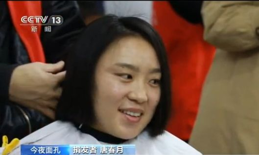 捐发者唐春月:刚刚我在剪头发的时候,坐在椅子上想象她们(患儿)梳着长发、特别开心的笑容,我自己觉得值了。