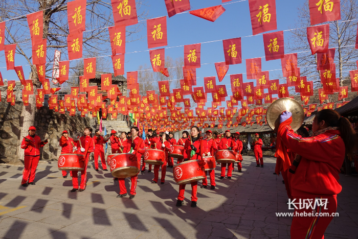 长城网讯(郝艳红)2020年1月4日,迎来新年的第一个周末,位于保定市曲阳县的虎山风景区门口锣鼓喧天,彩旗招展,红彤彤的灯笼布满景区各个角落,到处喜气洋洋,年味儿十足。游客们穿过“五福门”,行至金石头上客栈,“拿金砖”“坐金椅”“接财气”,把各种娱乐项目都尝试了一遍,为了图个新年好彩头儿。