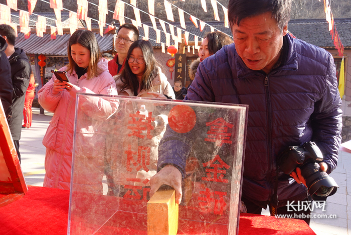 “黄金是财富和吉祥的象征,依托虎山的黄金文化资源,今年春节期间我们景区设置了很多与‘金’有关的娱乐活动,也是迎合新年老百姓对‘黄金’文化的推崇。”张经理介绍到,“比如,正月初一到十五,来景区不仅有鼓乐队扭秧歌的热闹可看,还可挑战拿金砖,赢大奖,单只手能抓起一号金砖,可现场赢得现金888元,如一只手能抓起二号金砖可赢得现金666元。还有坐金椅、迎财神、接财气、投币祈福等各种活动!景区还在福文化馆,金台寺设置了祈福区,可挂福牌,挂福带,击金鼓,敲金锣,拜财神等活动。”