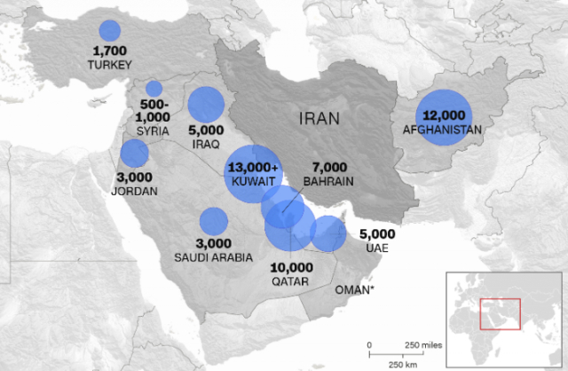 这张图,是美军在中东地区的驻军分部图。