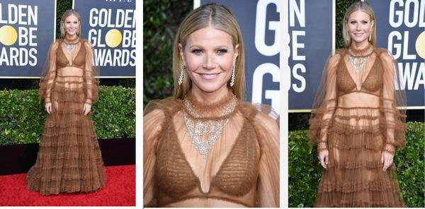 Gwyneth Paltrow身穿Fendi,佩戴Bvlgari高级珠宝亮相第77届金球奖红毯。