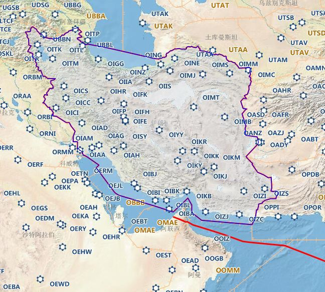 记者查阅实时雷达追踪软件发现,目前,除伊朗本国航司、由伊朗起降的国际航班外,土耳其航空、印尼鹰航、马航,及中东地区、俄罗斯、乌克兰等国家的航司仍在使用伊朗空域。