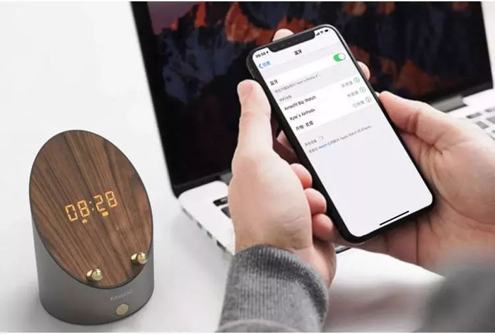 如果仅仅把它当作一个音箱,那就有点“埋没”它的实力了。我仔细“开发”了一下,发现它还能用来看时间、当闹钟、做手机支架。打开音箱,就是一个电子时钟,数字大又清晰,放在床边,睡眼朦胧也能看清时间。