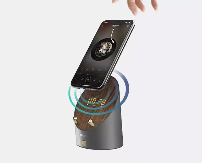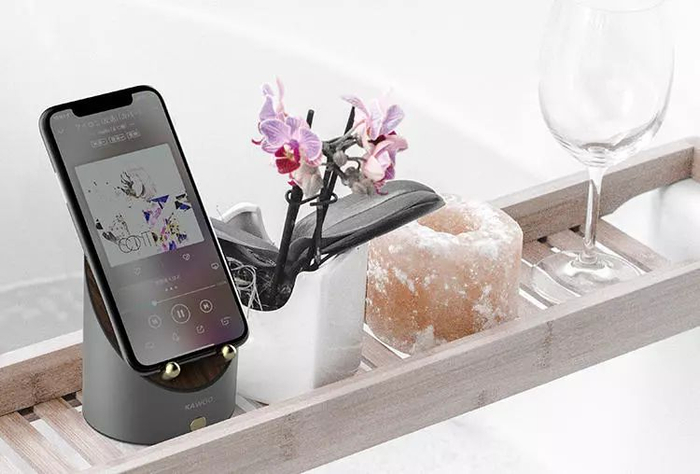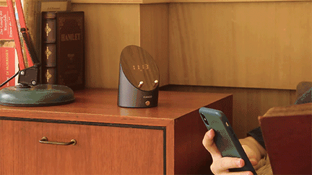把外放着音乐的手机放上卡位,就能“听声”自动连上音箱,下一秒传出来就是音箱扩音效果了,堪比小型音乐厅效果。而且切歌、换歌不延时,完全无缝衔接!