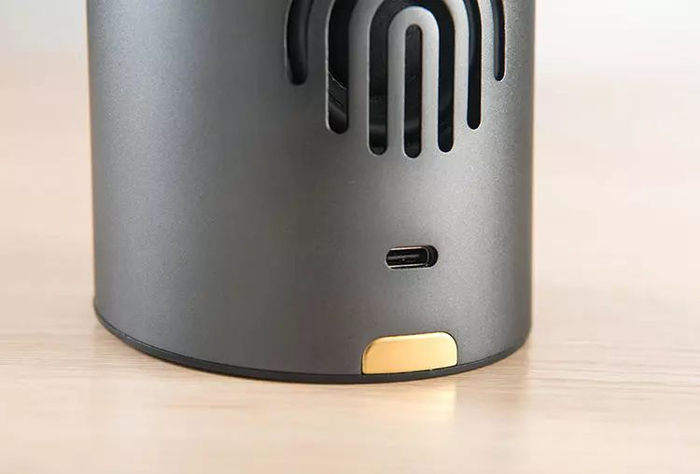 外壳采用苹果手机同款铝合金材质,侧面是磨砂工艺、高级灰配色,斜切面则是黑胡桃木纹,触感细腻高级,摆放在家里、办公室,雅致又有艺术感。