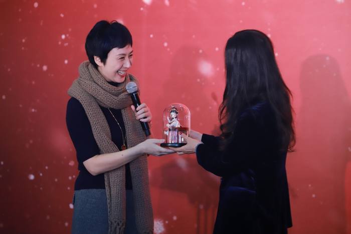 东艺副总罗学勤给史依弘送小礼物。