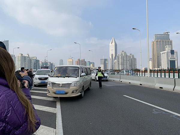 交警在上海的南北高架上查处“客运货”。本文图片均为澎湃新闻记者 朱奕奕 图