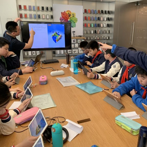 当学生们在苹果专卖店里用手机或Ipad进行编程时,店内其他客人会好奇地问:“你们都不上课么?”
