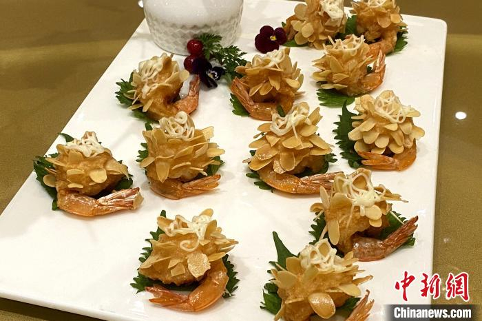 当日,记者在饭店后厨看到,食材被整齐地摆放在桌上,厨师们各显厨艺本领,通过炒、爆、熘、炸、烹等技艺,不一会一道道美食呈现在眼前。其中,如风桃花虾、金鼎葫芦鸡、临潼石榴包等各具陕西特色的菜品,让人垂涎欲滴,现场感受到了浓浓的“年味”。