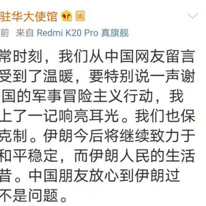 锐参考 | 来自伊朗使馆的致谢:中国朋友请放心!
