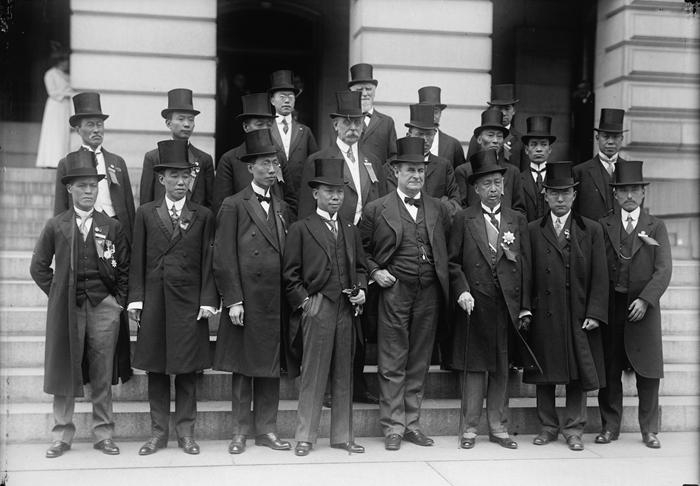 1915年5月26日,美国国务卿勃拉恩(前排左四)接见张弼士(前排左三)率领的中华游美实业团