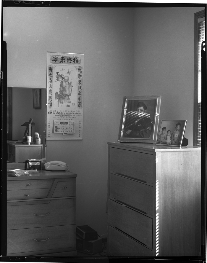 三藩市唐人街老华侨的房间,房间里挂着丈夫的遗像 1977年