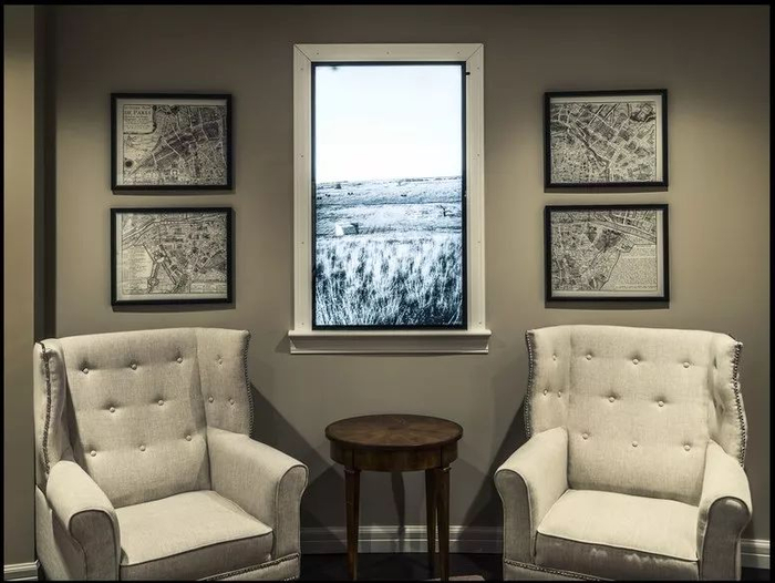 富豪打造的掩体的室内环境,窗外景色实为LED屏