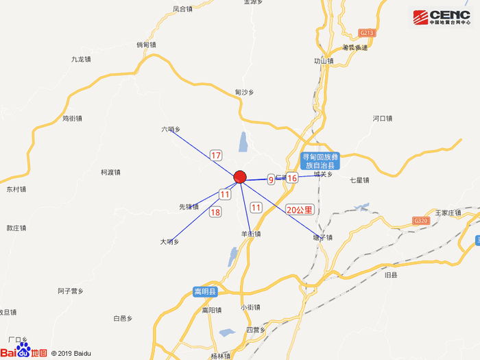 原标题:云南昆明市寻甸县发生4.2级地震