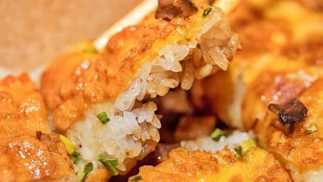 武汉人将炒饭裹上两层蛋皮,在锅上刷油煎一煎,切方块,取名豆皮,就成了一个好吃的点心了。