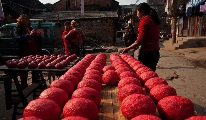 红粑粑,也就是你们说的年糕,是现在还会出现在大年初一餐桌上的食物,铜仁那边的传统就是大年初一的早上吃饺子跟红粑粑。粑粑是铜仁传统食品,逢年过节、订婚、建屋、做寿、小孩满月和周岁等都要做红粑粑。