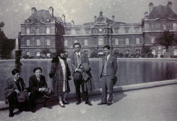 刘海粟、刘抗、张澄江等在卢森堡博物馆前合影,1929年。新加坡刘抗家庭供图