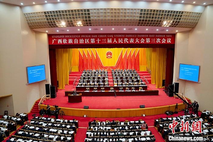 资料图:1月12日,广西壮族自治区第十三届人民代表大会第三次会议在南宁开幕。中新社记者 陈冠言 摄