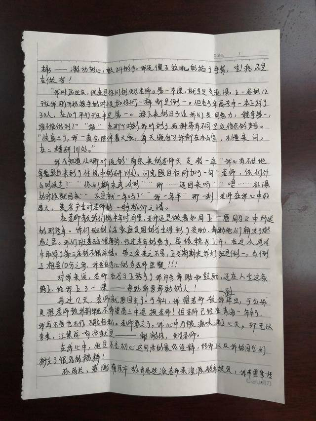在任课老师的共同努力下,今年高考两个班均有大幅度地提升,一本上线数和本科上线数均远远超过既定目标,其中高三(12)班一本上线30人,平行班第一;同时每个班都有裸分超500分的高分学生。高考成绩揭晓后,12班班主任韩老师写信说:“厉老师,12班能取得如此优异的成绩,真的太感谢您了!这一年跟您学到了很多,您既是12班学生的老师,也是我的老师。”成功地送走了2019届高三,又迎来了2020届高三,他正以昂扬的斗志阔步前行!