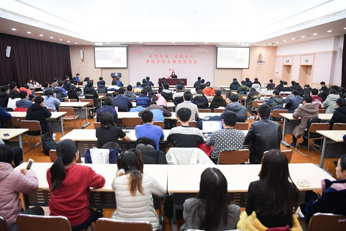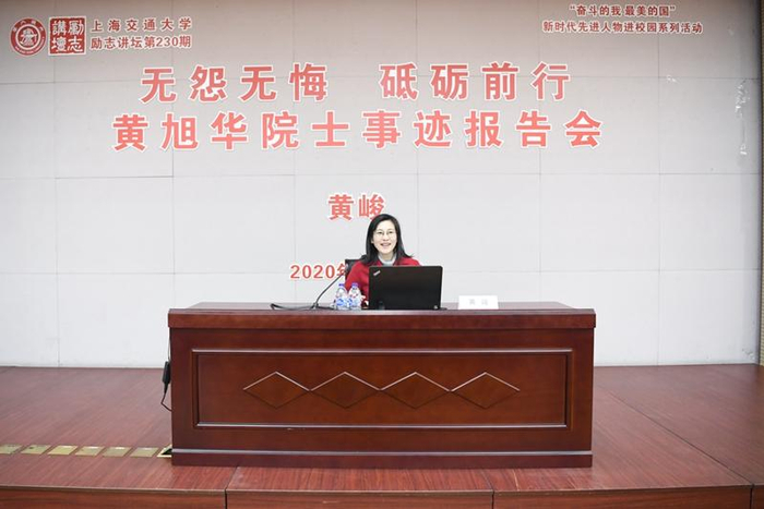 1月15日下午,黄旭华之女黄峻女士做客第230期励志讲坛暨“奋斗的我 最美的国”新时代先进人物进校园系列活动,对话交大学子,分享2019年度国家最高科学技术奖获得者、“共和国勋章”获得者、中国船舶集团公司719研究所名誉所长黄旭华院士的感人事迹。来自船舶海洋与建筑工程学院、机械与动力工程学院、生命科学技术学院、马克思主义学院、文创学院、档案馆的近200名师生共同聆听了黄老科研报国、爱国奋斗的传奇一生。