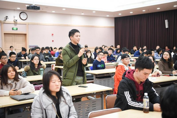 在观众提问环节,来自船舶海洋与建筑工程学院的同学提出了就业、择业问题,黄峻女士转达了父亲的意见,告诉我们要把自己的个人爱好与祖国的发展需要联系起来,并鼓励同学们投身科研、为实现两个一百年的目标做出贡献。最后,黄峻女士代表父亲向母校表示感谢,祝母校百尺竿头,更进一步。