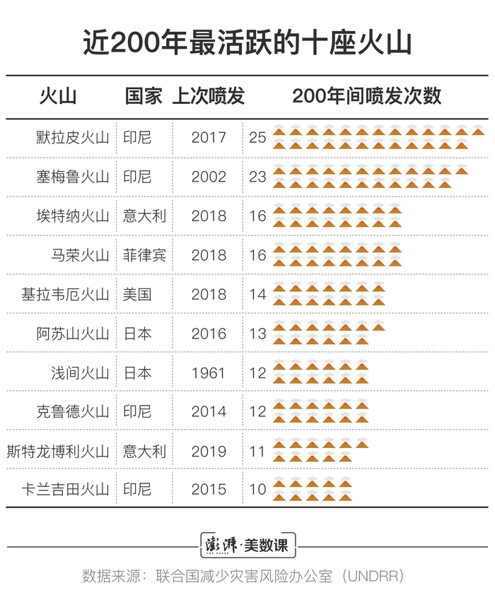 印尼的火山不仅多,而且还活跃。在近200年火山喷发次数最多的十座火山中,印尼就有4座。
