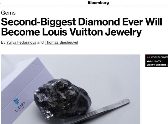 原标题:路易威登购入世界第二大钻石原石 重达1758克拉(图)