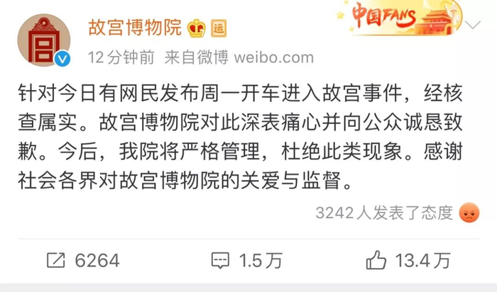 故宫致歉:事件属实,向公众诚恳致歉
