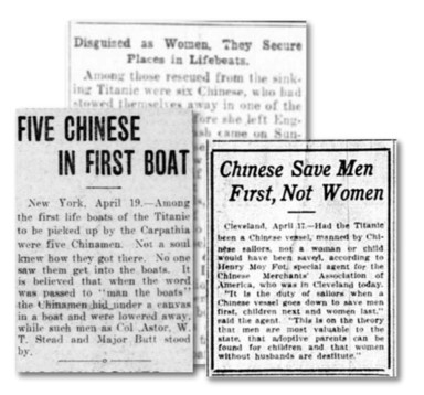 “泰坦尼克号上生还率这么低,这8个三等舱下等人居然活下来6个?没人能说清这些中国人从哪里冒出来的,也不晓得他们怎么上了救生船,但他们却好好地坐在里面。”恶意的揣测迅速被媒体传扬报道。有人说他们是冒充了女性挤上了救生船,还有人说他们悄悄的躲在救生船的下边。英美媒体肆意宣传六名中国人贪生怕死,不顾“Lady First”的原则,强行开走救生艇,甚至以此来衬托英美绅士的高大形象。