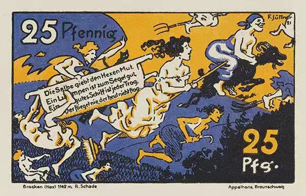 otgeld,即紧急货币,发行于早期魏玛共和国(Weimar Republic),是第一次世界大战期间和战后德国那段动荡岁月的有力物证。此次展览中,从反映1917年灾难性食物短缺的“芜菁货币”(Turnip Notgeld),到丰富多彩的以各地区地标和民间故事为主题的票面设计,都反应了德国社会与政治风貌的独特设计,展现了紧急货币在当时的历史环境下是如何应对国家危机。