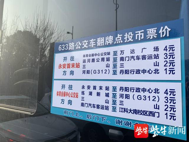 633路:镇江至丹阳,全程票价4元,途中站点票价翻牌执行。