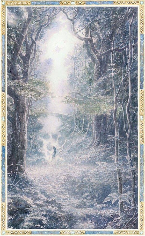 贝伦初遇跳舞的露西恩,艾伦·李(Alan Lee)绘制,托尔金《贝伦与露西恩》,上海人民出版社,2017年6月版,45页