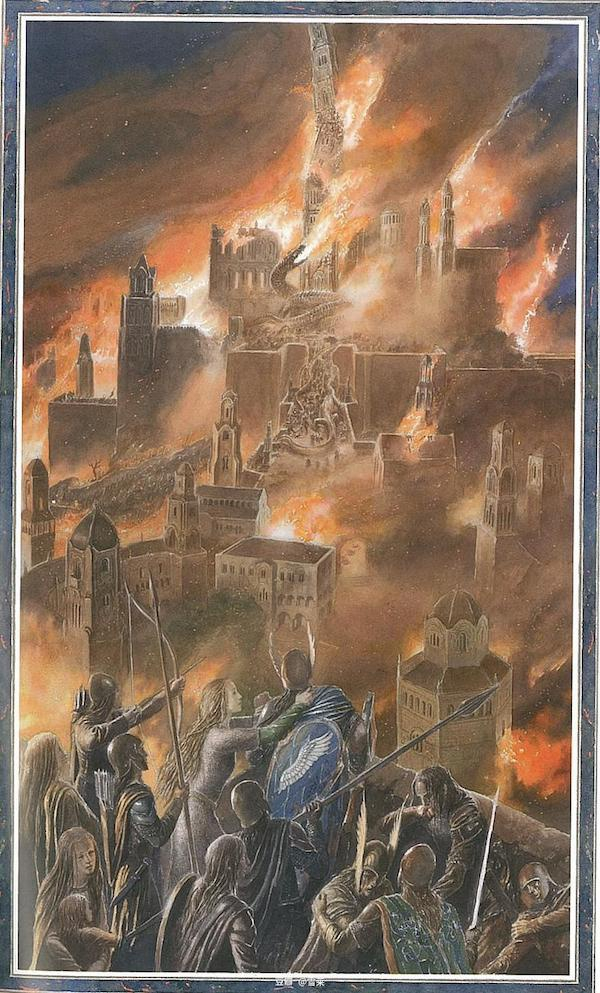 刚多林的陷落,艾伦·李(Alan Lee)绘制,J.R.R.Tolkien:The Fall of Gondolin, HarperCollins Publishers, 2018, p97