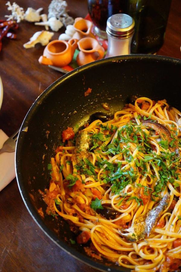 我已经在意大利旅行了差不多三周,从南到北也品尝了不少口味的意面,但是名为午夜意面(Midnight Pasta)的头盘似乎我还没在饭馆的菜单上见过。