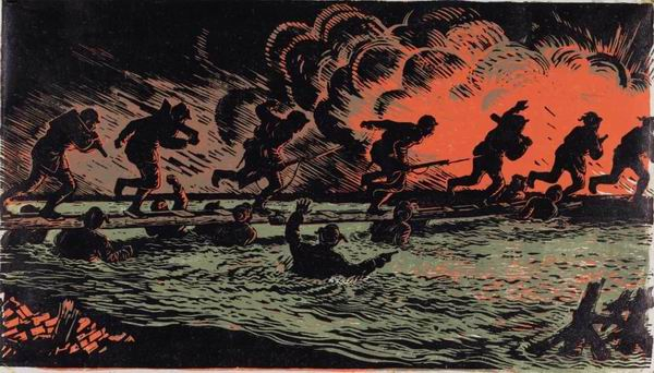 古元 人桥 纸本 版画 1948年 20.5cm×36cm 1992年艺术家捐赠