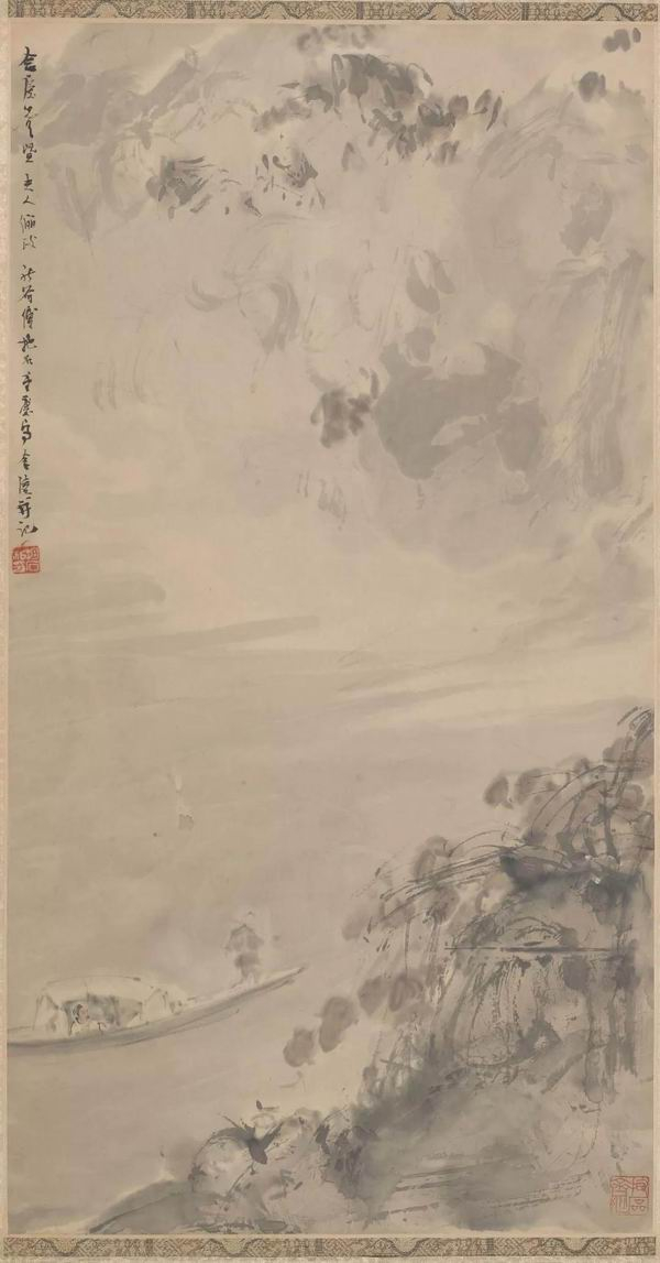 石涛 江干访友图 纸本设色 中国画 清代 134.5cmx54cm 1964年邓拓捐赠