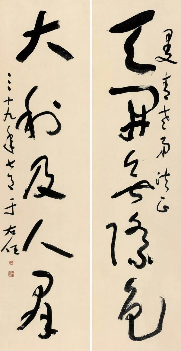 于右任 天开大利五言联 纸本 书法 1950年 171.8cm×44.2cm×2 2018年朱奕龙捐赠