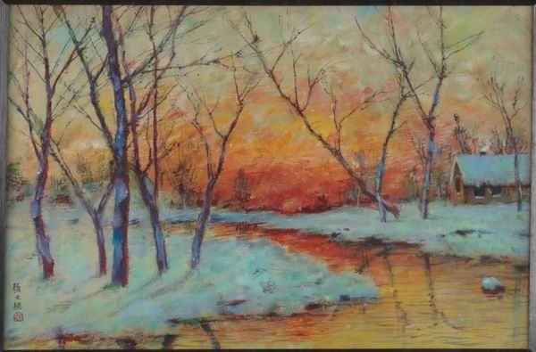 颜文樑 晚霞雪景 布面油彩 油画 20世纪70年代 22cmx33cm 2016年吴文家、吴乙真捐赠