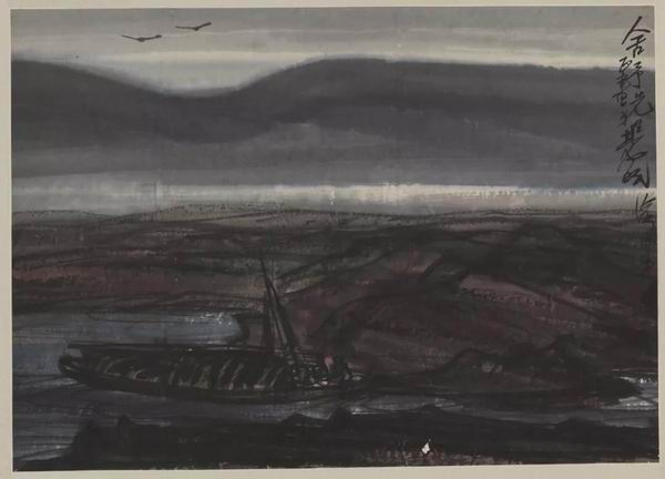 林风眠 泊舟 纸本水墨设色 中国画 1941年 40cm×56cm 2015年老舍、胡絜青家属舒济、舒乙、舒雨、舒立捐赠
