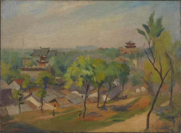 秦宣夫 鼓楼远眺 布面油彩 油画 1948年 54cm×79cm 2013年秦志燕、秦志云、秦志宁、秦翊捐赠