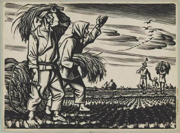 李桦 秋收 纸本黑白木刻 版画 1940年 20cm×27cm 2005年王琦捐赠