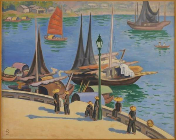 陈抱一 香港码头 布面油彩 油画 1942年 72m×90.5cm 1964年家属陈绿妮捐赠