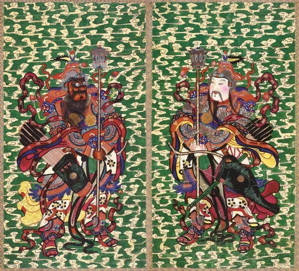 佚名 绿云门神:秦琼、敬德 纸 年画 清代 120cm×64cm 2009年王树村捐赠